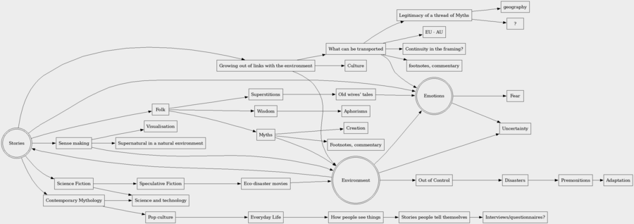What stories are told to understand the weather: how do historical myths relate to contemporary ones, e.g. sci-fi movies about ecological disasters, where stories are only told when the weather becomes extreme… what happens to all the other stories about weather in daily life?